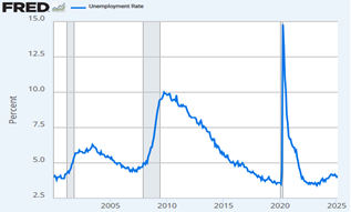 6        U.S. Bureau of Labor Statistics, Unemployment Rate [UNRATE], retrieved from FRED, Federal Reserve Bank of St. Louis; https://fred.stlouisfed.org/series/UNRATE, April 3, 2025.