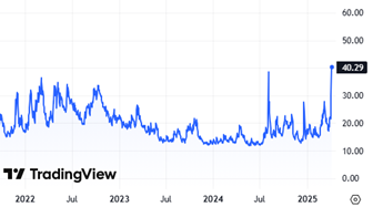 2        TradingView. Volatility S&P 500 Index. Retrieved from https://www.tradingview.com/chart/S5oI8Odc/?symbol=TVC%3AVIX, April 4, 2025.