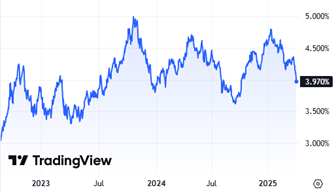 Looking at the 10-Year U.S. Treasury yield over the last few years, it has remained between 3.5% and 5%.  Following the rally in bonds, the yield is trading just below 4% as of April 4, 2025.  Investors will need to determine if the yield can continue within that range or if significant changes in economic growth, inflation and U.S. debt levels drive the yield materially higher or lower than that range.